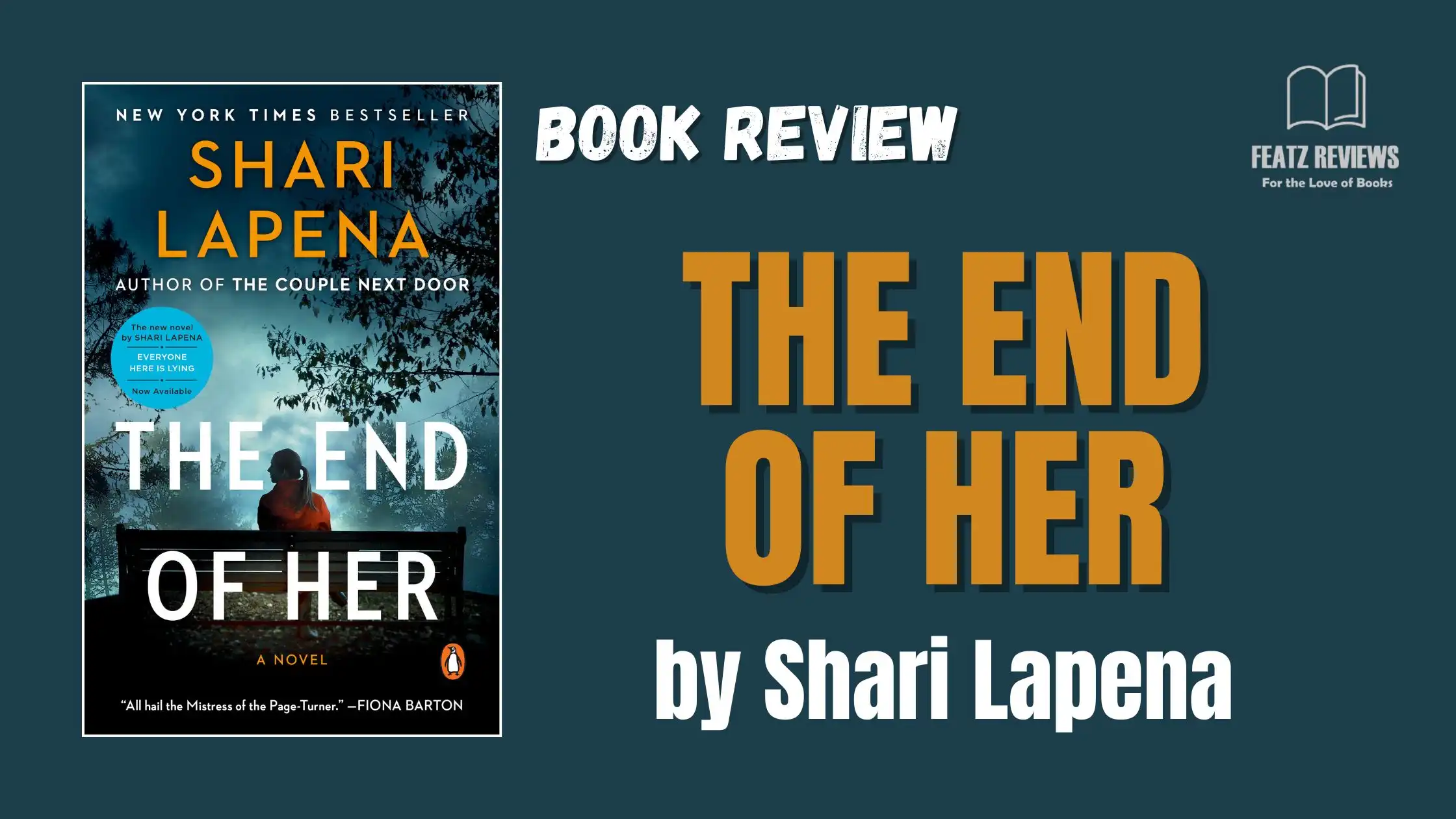 Title: THE END OF HER Author: SHARI LAPENA ISBN: 9781787632998 Publisher: Penguin Books Pages: 352 Source: Private Copy It starts with a shocking accusation…Stephanie and Patrick are recently married, with new-born twins. While Stephanie struggles with the disorienting effects of